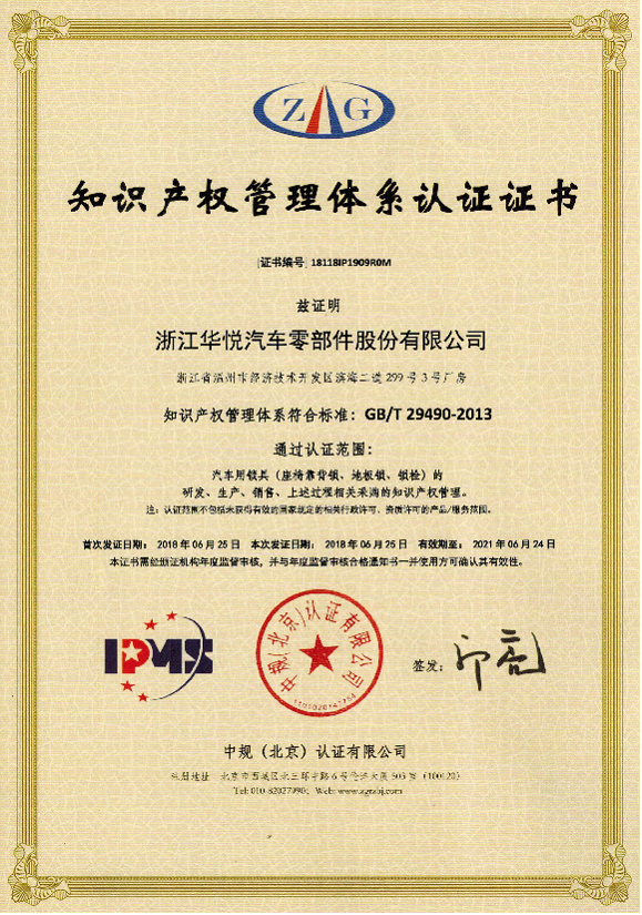 热烈祝贺华悦股份通过知识产权贯标认证 浙江华悦汽车零部件股份有限公司于2018年6月25日正式获得…